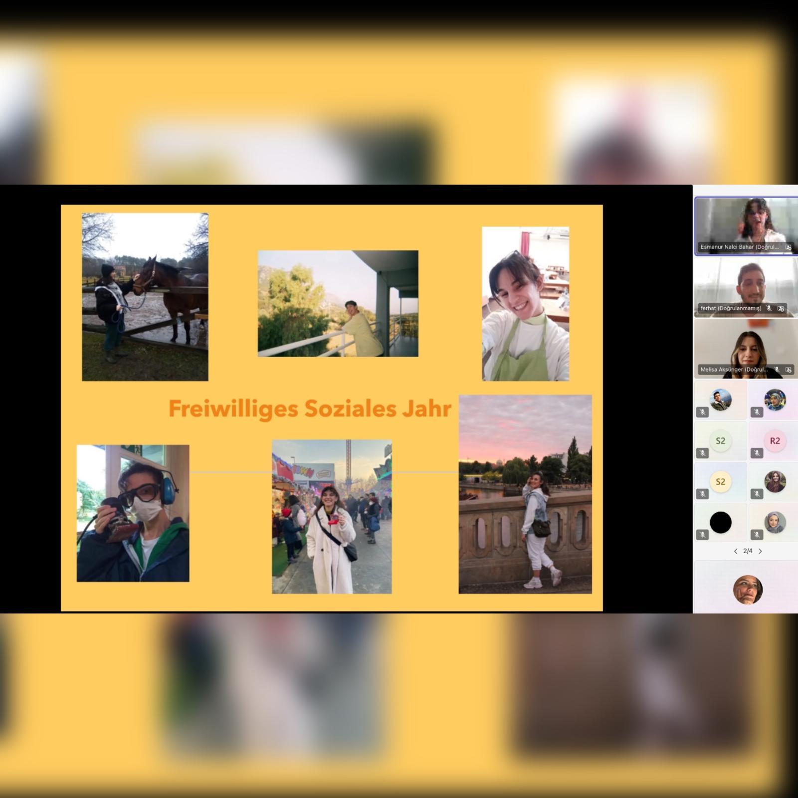 Manisa Celal Bayar Üniversitesi Sosyal Hizmet Bölümü olarak 22 Mayıs 2025 tarihinde “Uluslararası Değişim Programları ve Gönüllülük Deneyimleri” başlıklı çevrim içi bir söyleşi gerçekleştirdik.Proje Tasarımı ve Yönetimi dersi sorumlu öğretim elemanı Rana Dayıoğlu Oyman tarafından planlanan ve yürütülen söyleşiye, bölüm mezunlarımızdan Esmanur Nalcı Bahar (2020), Melisa Aksünger (2023) ve Ferhat Durukan (2025) katıldı. Almanya, İspanya ve Polonya’daki gönüllülük ve proje deneyimlerini paylaşan konuşmacılar, gönüllülüğün kültürlerarası öğrenme ve kültürel duyarlılık geliştirilmesi açısından sunduğu fırsatlara değindiler.Öğrenciler, Avrupa Dayanışma Programları ve Parceval gibi gönüllülük/staj olanakları hakkında bilgilendirildi; mezunlarla kurulan bağ, öğrenciler için yol gösterici oldu. Söyleşide konuşmacılar, sıklıkla “motivasyonun, heyecanı yitirmemenin ve vazgeçmemenin” önemi üzerinde durarak yurtdışında rol aldıkları gönüllü çalışmaların dayanıklılıklarını artırdığına dikkat çekti.Etkinliğe katkı sunan tüm konuşmacılarımıza ve katılımcılara teşekkür ederiz.